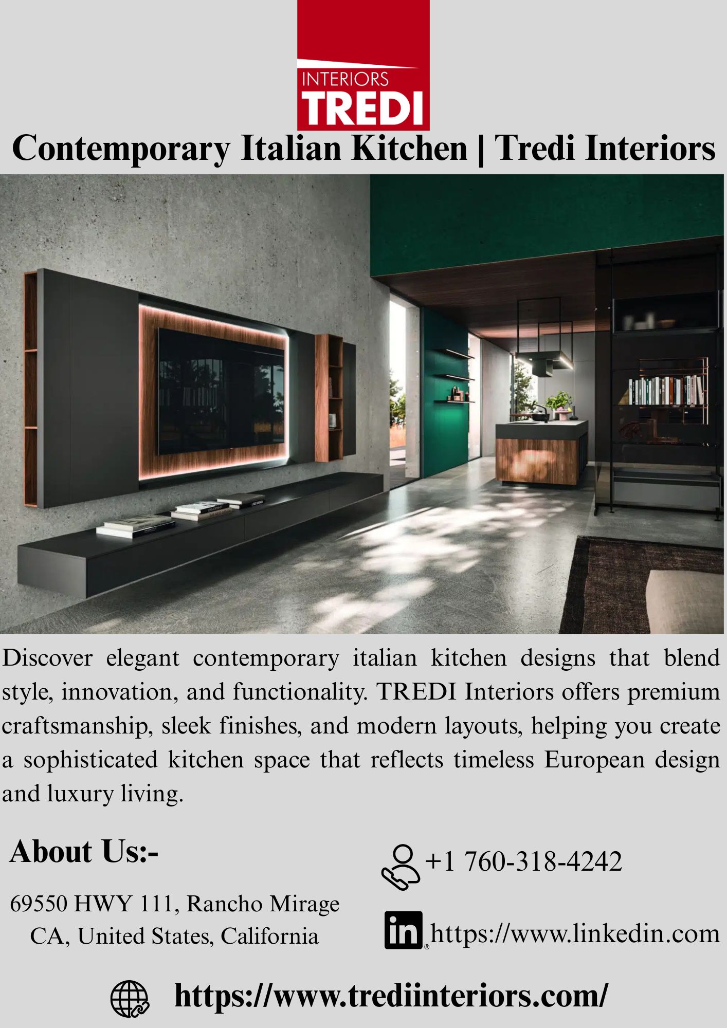 Discover elegant contemporary italian kitchen designs that blend style, innovation, and functionality. TREDI Interiors offers premium craftsmanship, sleek finishes, and modern layouts, helping you create a sophisticated kitchen space that reflects timeless European design and luxury living.