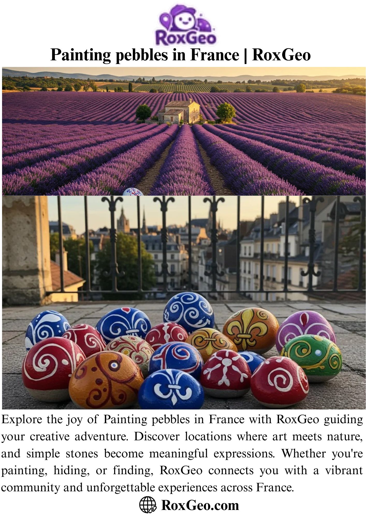 Explore the joy of Painting pebbles in France with RoxGeo guiding your creative adventure. Discover locations where art meets nature, and simple stones become meaningful expressions. Whether you're painting, hiding, or finding, RoxGeo connects you with a vibrant community and unforgettable experiences across France.