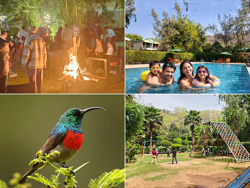 · Activities: Jungle safaris, nature walks, bird watching, bonfires with evening music, and pool/outdoor games.